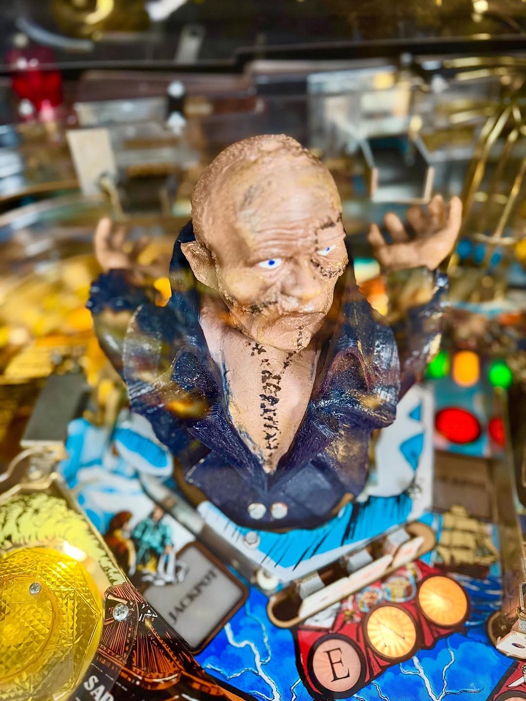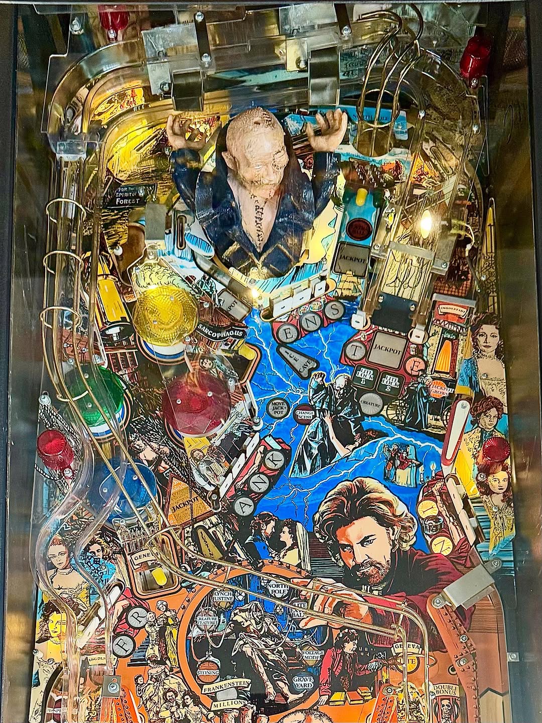 The Towering Animated Creature: The game's unforgettable centerpiece. This detailed model of the Monster isn't just decoration—he's the final boss. During the Wizard Mode, he rises and angrily hurls pinballs down onto the playfield, turning defense into a frantic scramble for survival.