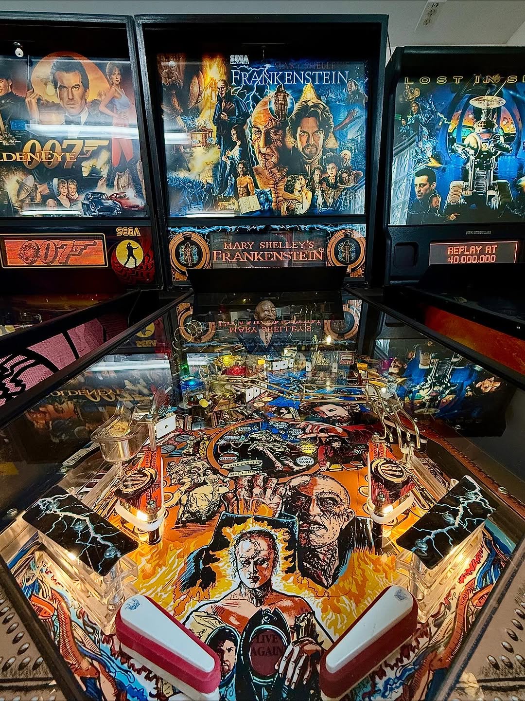 This machine was Sega Pinball's debut, and it flexes all the new technology with a massive 192x64 DMD that drives a deep narrative with stunning animations. You choose your soundtrack: the soaring orchestral film score or the relentless, iconic guitar riffs of Edgar Winter's rock instrumental "Frankenstein." The entire experience is framed by the breathtaking, painterly cabinet and playfield artwork of pinball legend Paul Faris.