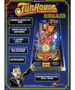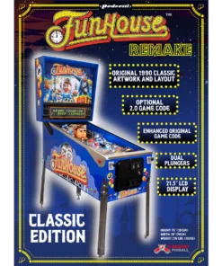 Funhouse Pinball: Classic Edition The Legend Returns. Authentically Rebuilt. He’s back, just as you remember. The original chaos, the iconic laugh, the timeless shots—all are preserved and perfected in the Funhouse Pinball: Classic Edition. This is the faithful resurrection of the 1990 classic, brought forward with modern clarity and reliability. Pure Nostalgia, Perfectly Preserved This is your chance to own the game that defined an era, re-released with the exact artwork, layout, and feel that made it legendary. Every colorful bumper, every rambling taunt from Rudy, every exhilarating loop has been meticulously preserved. Classic Gameplay, Modern Touch Experience the original, unbeatable game code just as it played in the arcades, now enhanced with modern displays and brilliant RGB lighting that highlights the playfield’s iconic design without altering its soul. Enjoy the flexibility of both the original (1.0) and enhanced (1.5) game modes, which add quality-of-life features like a ball saver and auto-launcher. The Foundation of a Collection The Classic Edition is the cornerstone of the Funhouse legacy. It's for the purist who wants the authentic experience and for the visionary who sees a canvas. This model is designed to be yours, with the option to personalize it over time with official upgrades like the expanded 2.0 game code, a shaker motor, or a stunning collector’s topper. Two Legends, One Choice Alongside this Classic Edition, we are also producing the ultra-exclusive Midnight Limited Edition—a complete visual and gameplay reimagining limited to 750 units worldwide. The Classic Edition is its timeless counterpart: unlimited, authentic, and ready to play. Welcome home, player. Rudy’s been waiting.